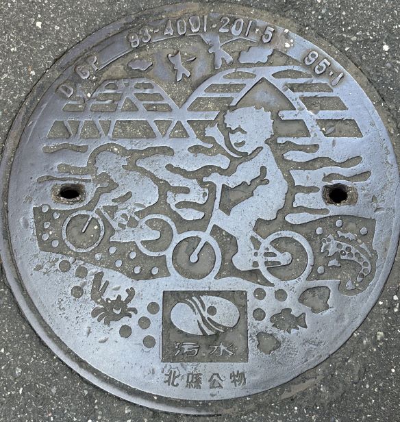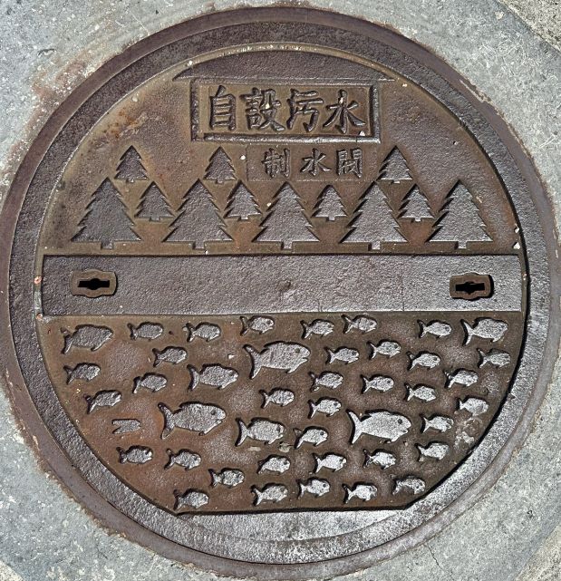 Der Kanaldeckel zeigt in der Mitte das kreisrunde Stadtsymbol. Das Monshō wurde der Stadt am 24. Dezember 1889 genehmigt. Die Städte in Japan führen sogenannte Monshō als eine Art Stadtlogo. Diese sind mit den Wappen nicht-japanischer Städte vergleichbar, folgen jedoch nicht den heraldischen Regeln. Die Stadtlogos können sich immer wieder ändern, je nach Ansicht der aktuellen politischen Stadtregierung.
